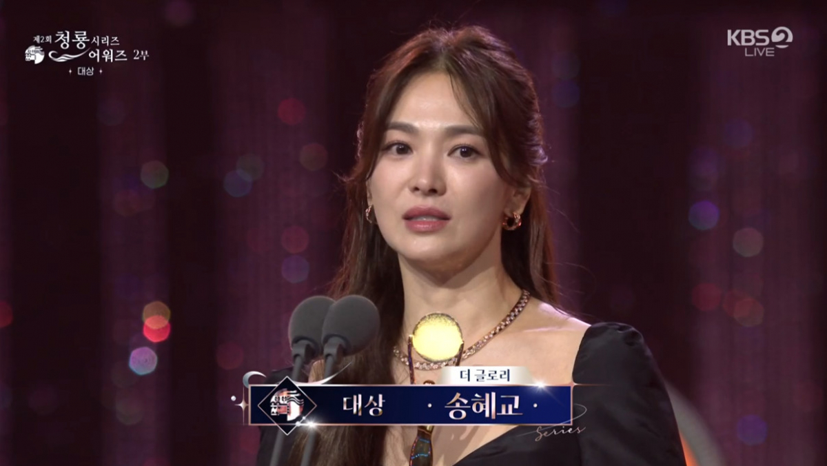 송혜교는 더 글로리에서의 연기를 통해 청룡 시리즈 어워즈에서 대상 수상을 이룩했다. 이번 대상 수상은 드라마 예능 부문을 통합해 작품 1편이나 개인 한 명을 선정하는 것으로, 대상 부문은 제 2회 시상식부터 신설되어 배우 송혜교가 청룡 시리즈 어워즈의 첫 대상 수상자가 되었다.