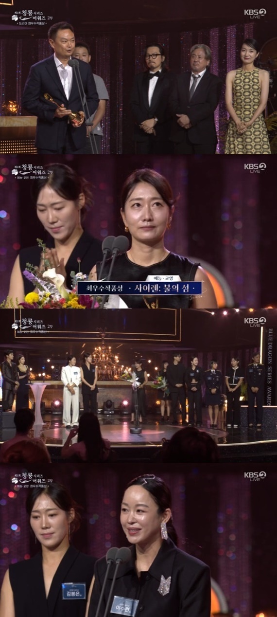 디즈니+ '카지노'는 드라마 부문 최우수 작품상, 넷플릭스 '사이렌: 불의 섬'는 예능 부문 최우수 작품상을 수상했다. 남자주연상은 하정우, 여자주연상은 수지가 수상했다.
