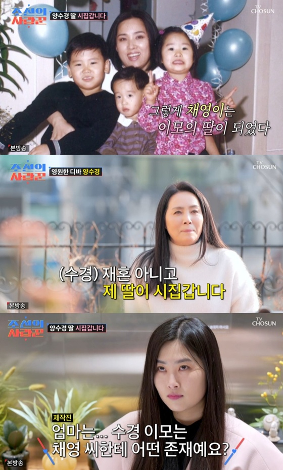 2009년, 양수경은 세상을 떠난 여동생의 두 자녀를 입양했습니다. 자신의 아들과 함께 총 세 명의 자녀를 혼자 키우게 된 것입니다. 특히 딸 윤채영은 초등학교 5학년 때 생모를 잃고 이모였던 양수경의 보살핌 아래 성장했습니다.