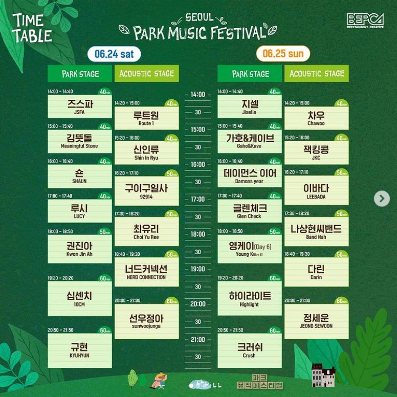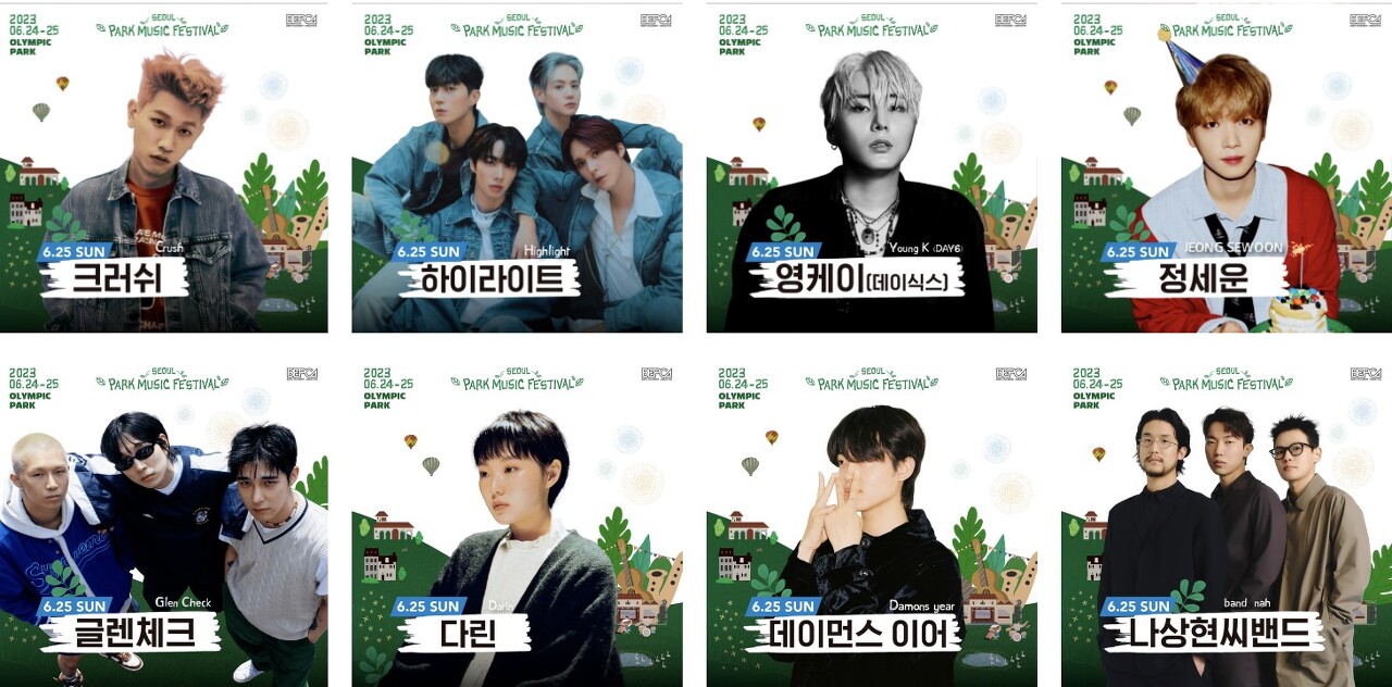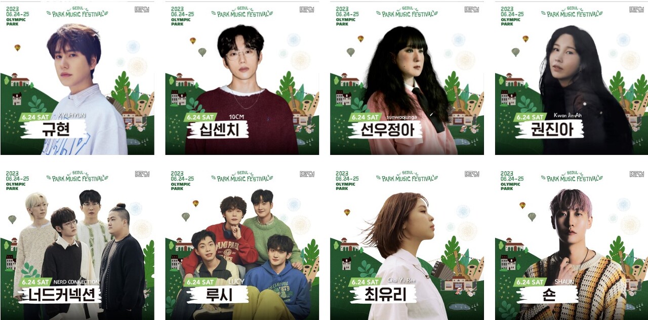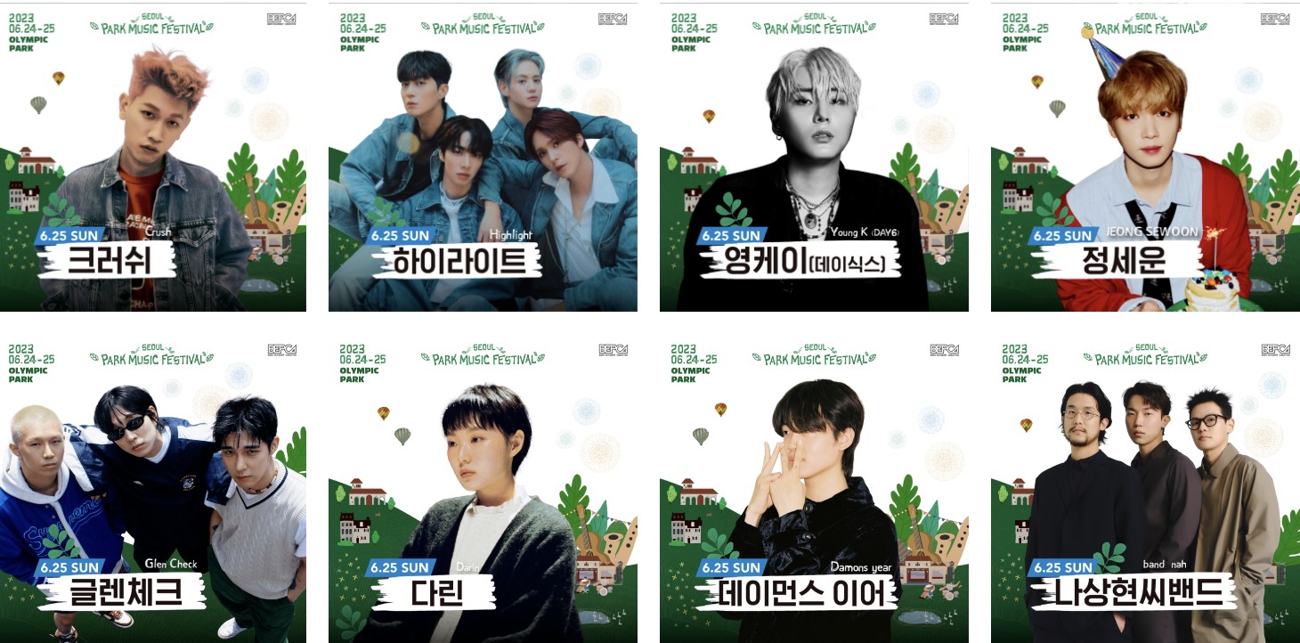 2023년 서울 파크 뮤직 페스티벌은 6월 24일(토)부터 6월 25일(일)까지 2일간 진행됩니다. 2일간의 라인업은 아래와 같습니다.